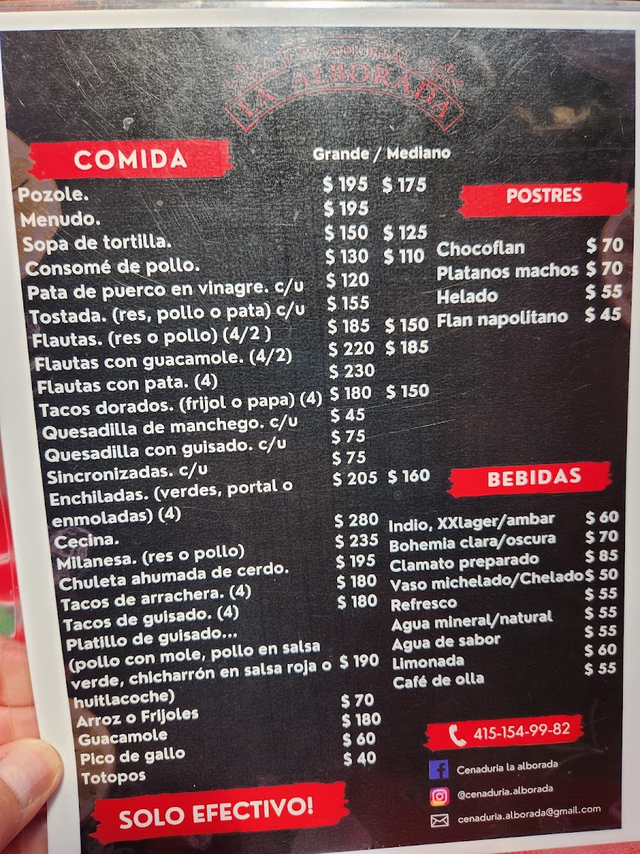 La Alborada, nestled in the heart of San Miguel de Allende, offers an authentic taste of Mexican cuisine steeped in tradition and rustic charm. Located at Diez de Sollano y Dávalos 11, this small family-owned spot is renowned primarily for its pozole—a rich, hearty stew that locals and visitors alike hail as the best in town. The pozole here arrives generously portioned, accompanied by classic garnishes that elevate its bold, spicy flavors without overwhelming the palate.